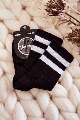 Młodzieżowe Skarpety Dwukolorowe Z Paskami Czarno-Szare