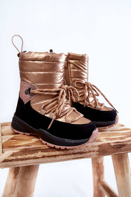 Dziecięce Botki Śniegowce Ocieplane Na Suwak Złote Leena