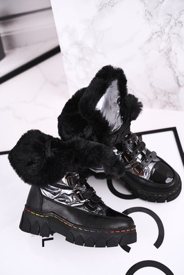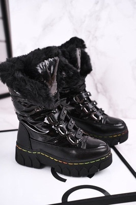 Dziecięce Śniegowce Ocieplone Futerkiem Czarne Hot Winter