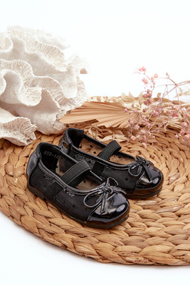 Lakierowane Balerinki Dziecięce Na Rzep Z Kokardą Czarne Olessa