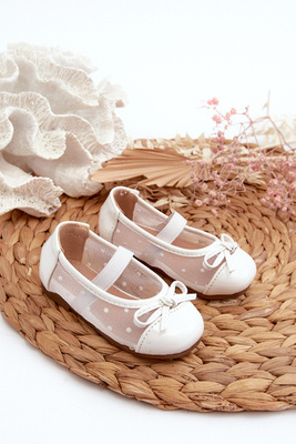 Lakierowane Balerinki Dziecięce Na Rzep Z Kokardą Białe Olessa