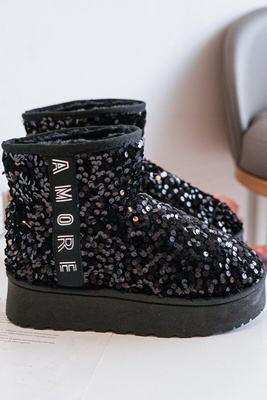 Dziecięce Śniegowce Botki Ocieplane Z Cekinami Czarne Rebbica