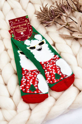Dziecięce Świąteczne Bawełniane Skarpety Termoaktywne Alpaka Zielone