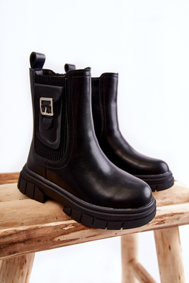 Dziecięce Lakierowane Ocieplane Botki Big Star II374045 Czarne