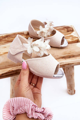 Dziecięce Sandały Na Rzep Z Kwiatami Beżowe Fiona