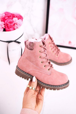 Dziecięce Botki Traperki Ocieplone Futerkiem Różowe London