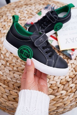 Trampki Dziecięce Na Rzep Big Star FF374087 Czarno-Zielone