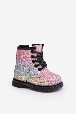 Dziecięce Brokatowe Botki Ocieplane z Suwakiem Multikolor Saussa