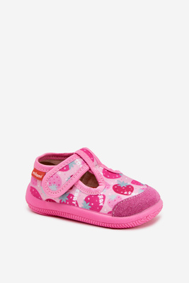 Kapcie Milami Dziecięce Na Rzepy W Truskawki Różowe Reathiana