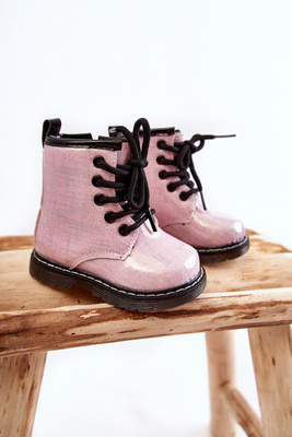 Dziecięce Botki Ocieplane Z Suwakiem Lakierowane Różowe Goopy
