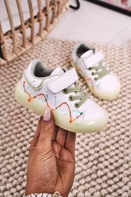 Dziecięce Sportowe Buty Ze Świecącą Podeszwą LED Biało-Zielone Disco